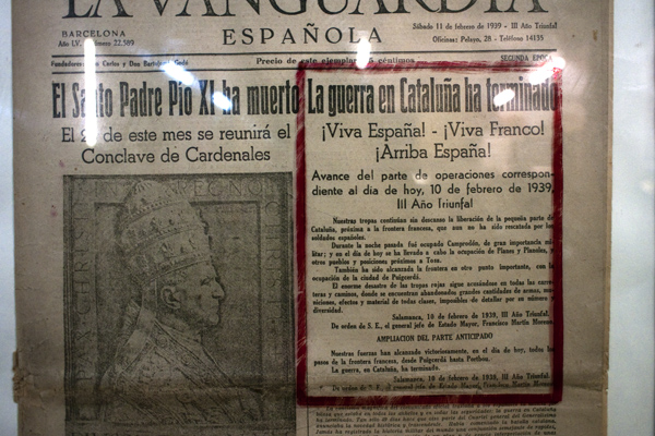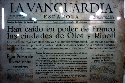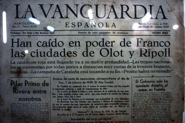 El día 8 de febrero de 1939 en la portada de La Vanguardia se anunciaba la caída de las ciudades de Olot y Ripoll en manos de los nacionales.