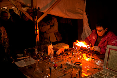 Especialmente interesante los puestos de trabajos artesanales como por ejemplo la de este trabajador del vidrio con su soplete.