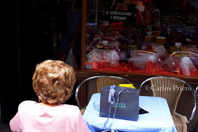 Aquí van unas fotografías ilustrativas de lo que os estoy contando, una combinación de peinado recargado y vestido que no dejaban de llamarme la atención cada vez que lo veía y provocaba en mi una respetuosa e incluso cómplice sonrisa.