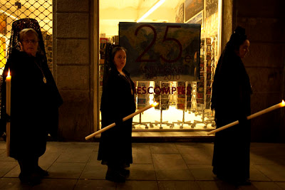 Desconocia completamente las procesiones de Barcelona . Me gusta mucho ese punto tetrico que les has dado. Un saludo .